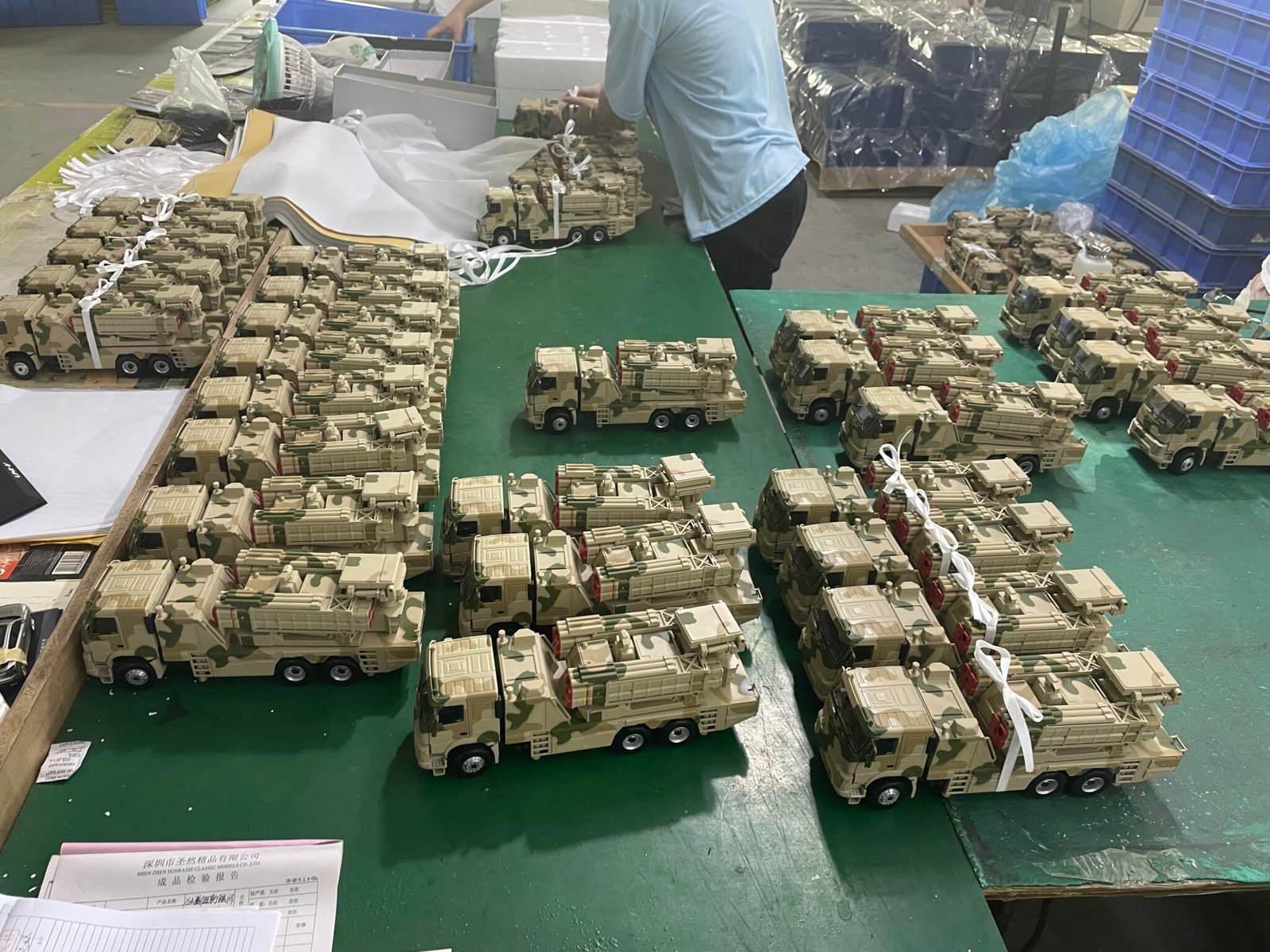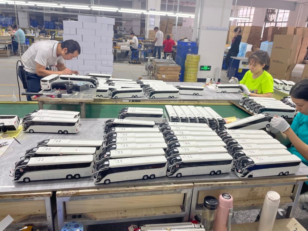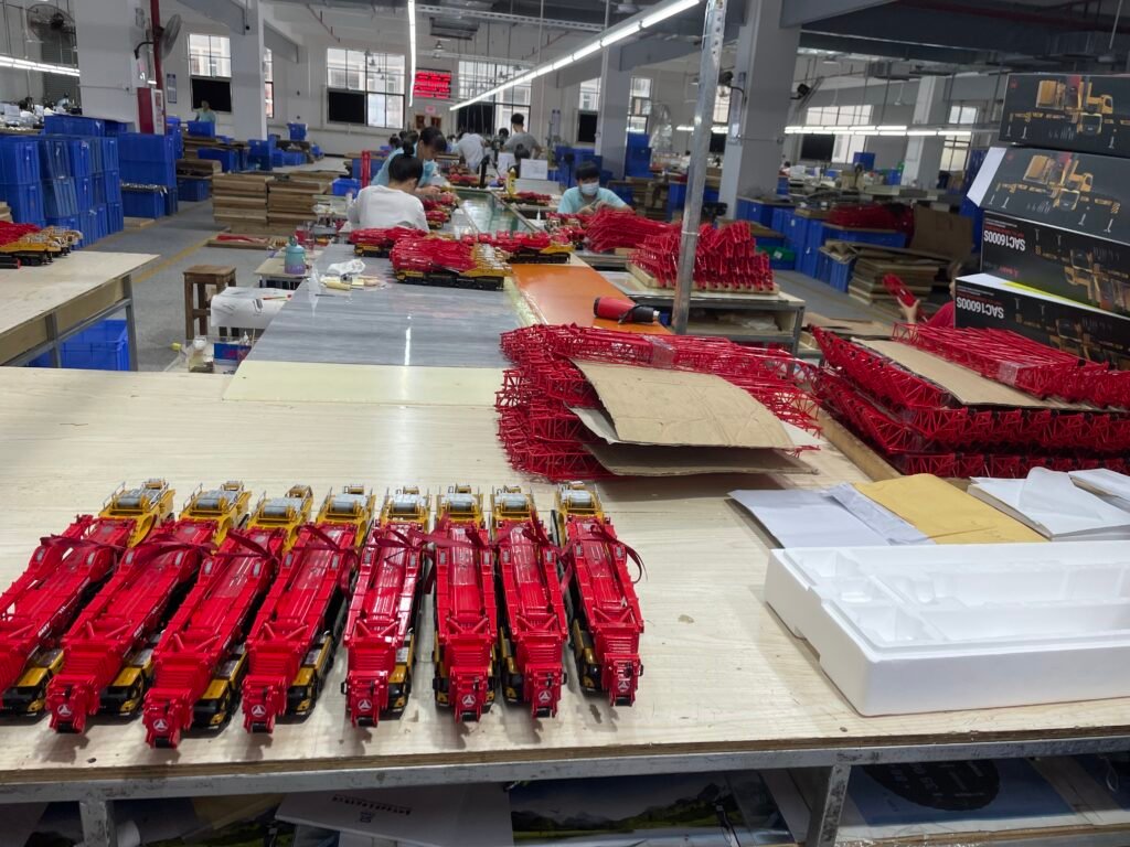 There are nearly 180 skilled assembly employees in our assembly dept. and features five dedicated assembly lines. One line specializes in the production of car and bus models, while another focuses on heavy-duty vehicles such as tractors and dump trucks. A third line is dedicated to engineering machinery models, including excavators, concrete pumps, and cranes. Additionally, we have a line for aircraft models. We also operate a dedicated line for urgent orders. This structured approach ensures efficiency and high-quality output in our assembly processes.