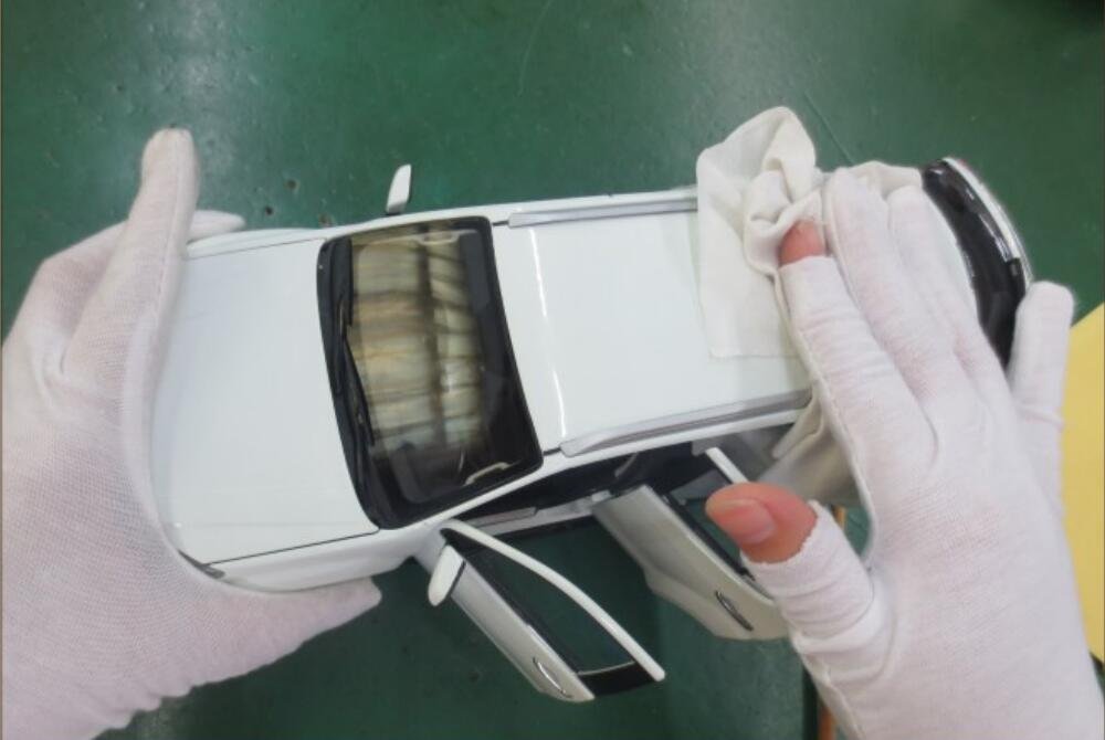 After the assembly is complete, the model undergoes a thorough cleaning procedure to remove dust, smudges, excess oil, and other surface contaminants. This step is crucial to ensure that the final product is free from imperfections and maintains its high-quality appearance.