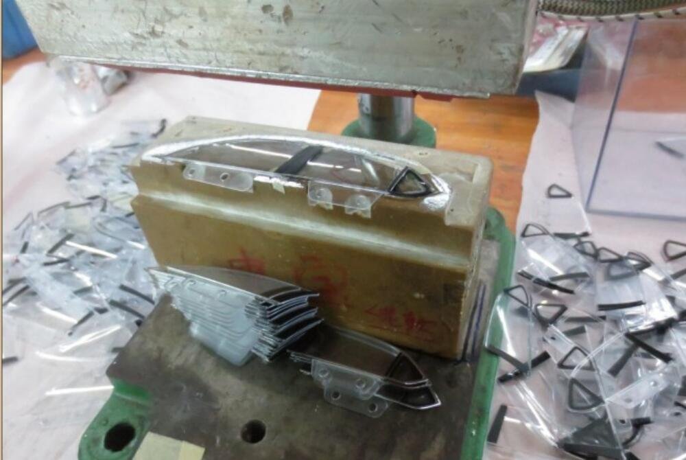 This process is used to apply chrome edges to glass components. By using a hot stamping machine, the chrome layer from the silver foil is transferred onto the parts at a temperature of approximately 220°C. The high heat and pressure ensure that the chrome adheres smoothly to the surface, creating a sleek, metallic finish on the edges. This technique is critical for achieving high-quality decorative details on glass parts in manufacturing.