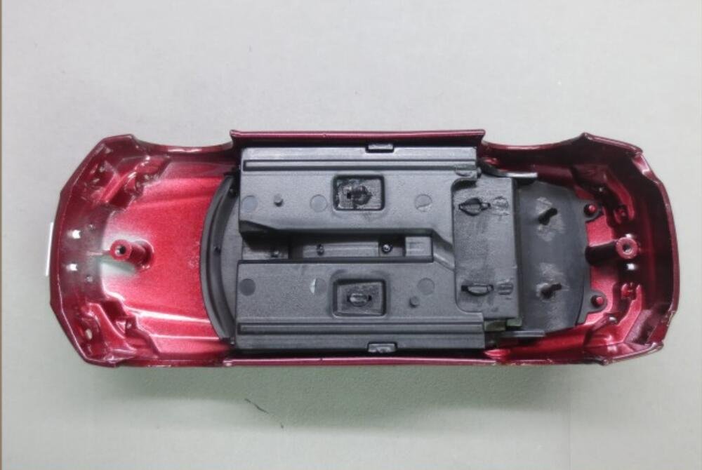 The chrome-plated logos on the front and rear of the model are typically created using electroplated water decals. These decals are carefully positioned and applied to ensure they adhere securely and accurately to the correct locations on the model.