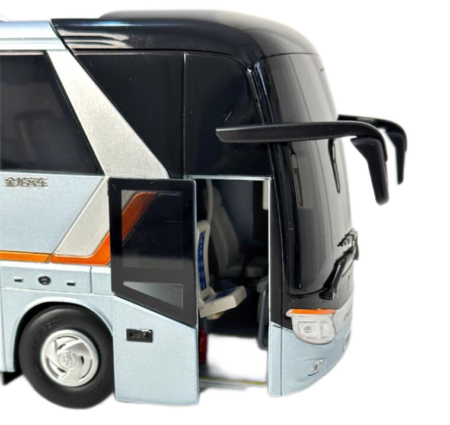 OEM-customized Kinglong Luxury Bus Collectible (1:38) made from premium alloy and ABS. Realistic steering wheels, openable doors & luggage compartments, and LED lighting effects. Perfect for automakers, dealerships, and brand promotion.