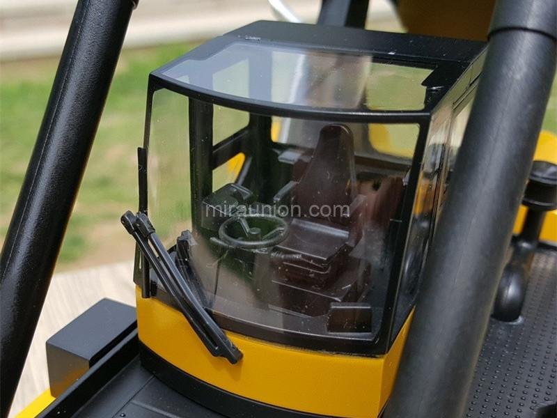 The cabin includes scaled-down seats, control levers, dashboard, and operator console with fine detailing.