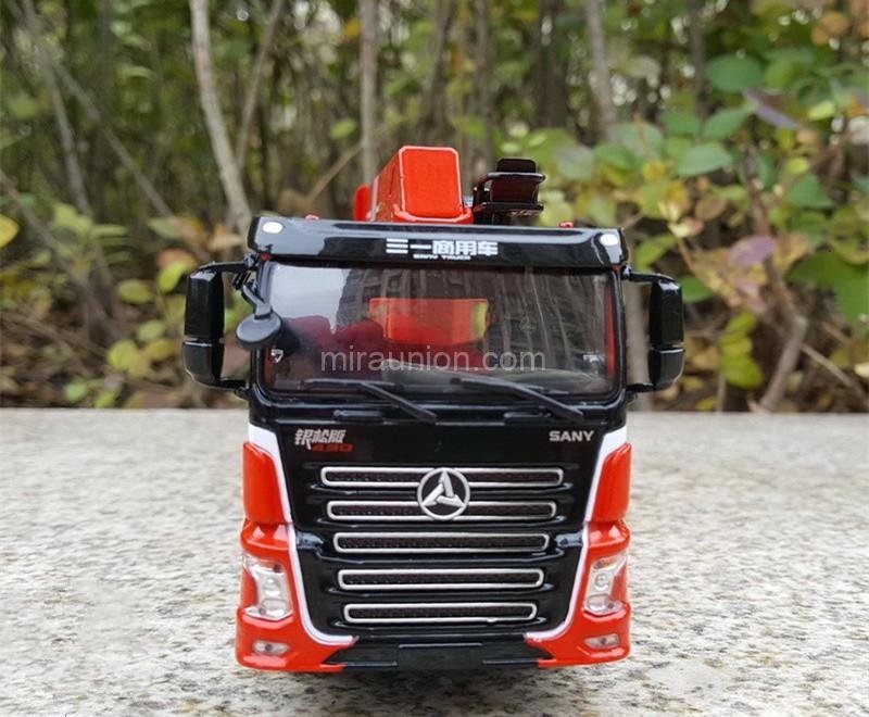 The surface coating is evenly applied, while the SANY markings and decorative striping are sharply reproduced, perfectly echoing the original crane truck.