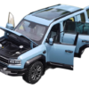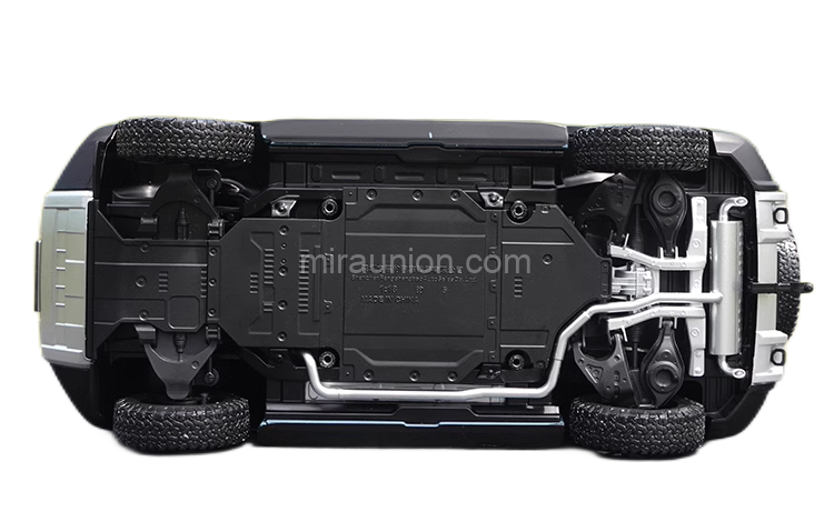 Four doors (front and rear) that open to reveal a meticulously designed interior.The engine hood opens, allowing you to view the detailed engine components inside.The tailgate opens to expose the spacious cargo area, just like the actual vehicle.