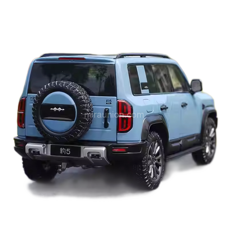 The front grille, headlights, and bumper reflect the aggressive, yet refined look of the BYD Leopard 5, with careful attention to detail in the chrome accents and the sharp contours of the vehicle’s front fascia.