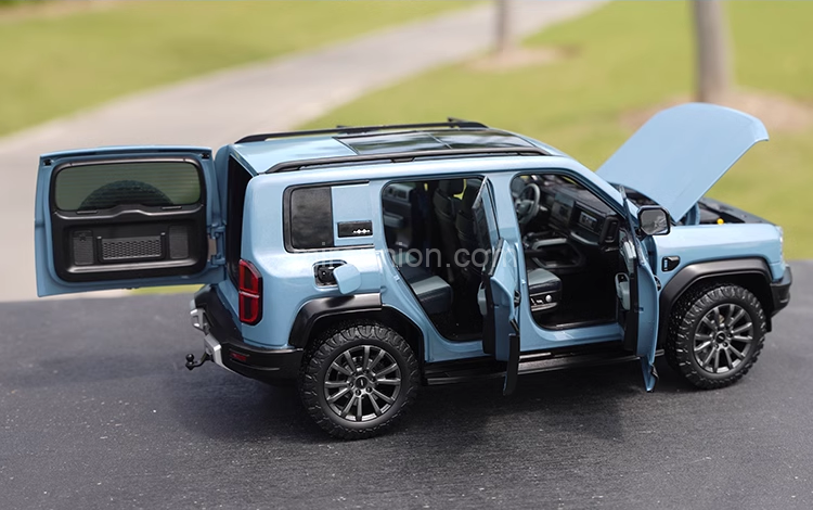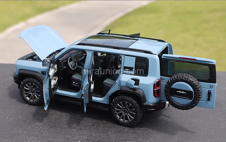 The body of this 1:18 BYD Leopard 5 Diecast SUV car model is crafted from premium alloy materials, ensuring a solid, durable feel while maintaining a realistic look. The smooth lines and aerodynamic profile closely mirror the real-life BYD Leopard 5, making it a standout piece for any collection.