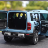 The rear end showcases the BYD logo and license plate details, while the tailgate opens smoothly to reveal more attention to detail inside the cargo area. This model captures the SUV’s sporty yet practical design.