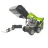 - Movable Bucket: The loader’s bucket is fully adjustable, allowing it to move up and down, showcasing its functionality in lifting and dumping operations.