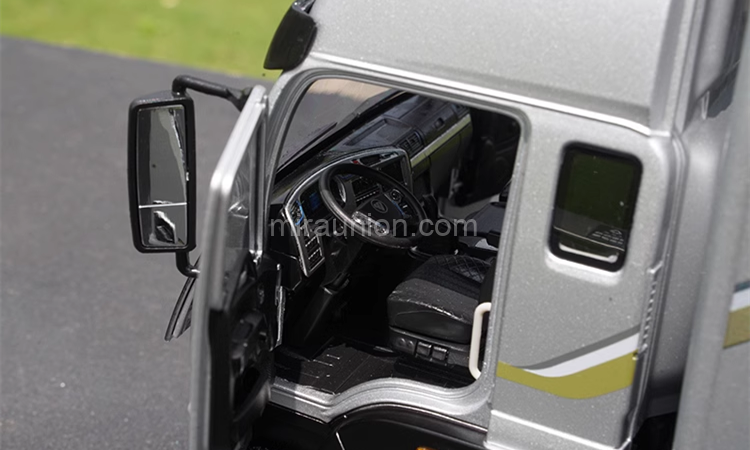 The rubber tires feature realistic tread patterns, offering a true-to-life texture and grip. Meanwhile, the intricately designed wheel hubs capture the essence of heavy-duty truck engineering, further elevating the model’s authenticity.