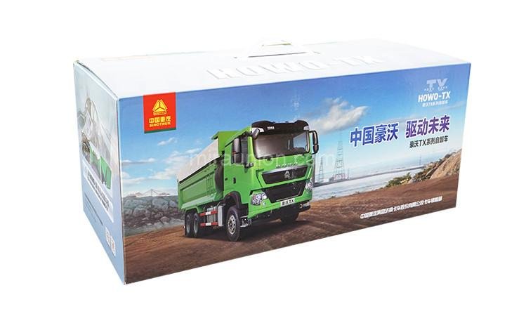 The body features sharp, clean lines that mirror the real HOWO TX dump truck. It captures the bold and rugged shape of a working machine, giving it a strong and professional look.
