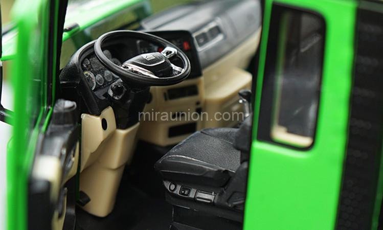 Peek inside and you’ll find carefully molded seats, dashboard dials, steering wheel, and foot pedals. The level of interior realism brings this truck to life on every shelf.