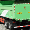 Steering-controlled front wheels, liftable metal dump bed with lockable tailgate