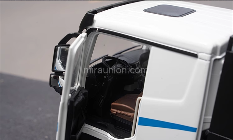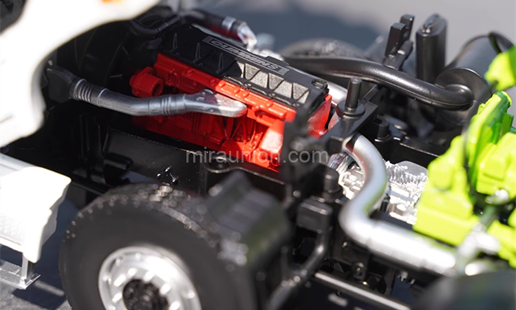 From the cab to the drum, the model features sharp, clean structure lines that reflect the truck’s aerodynamic engineering and rugged frame.