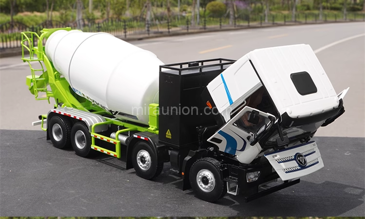 The model mirrors the bold, industrial design of the real Foton Loxa mixer truck. Its proportion and presence deliver the power and size of a heavy-duty concrete hauler.