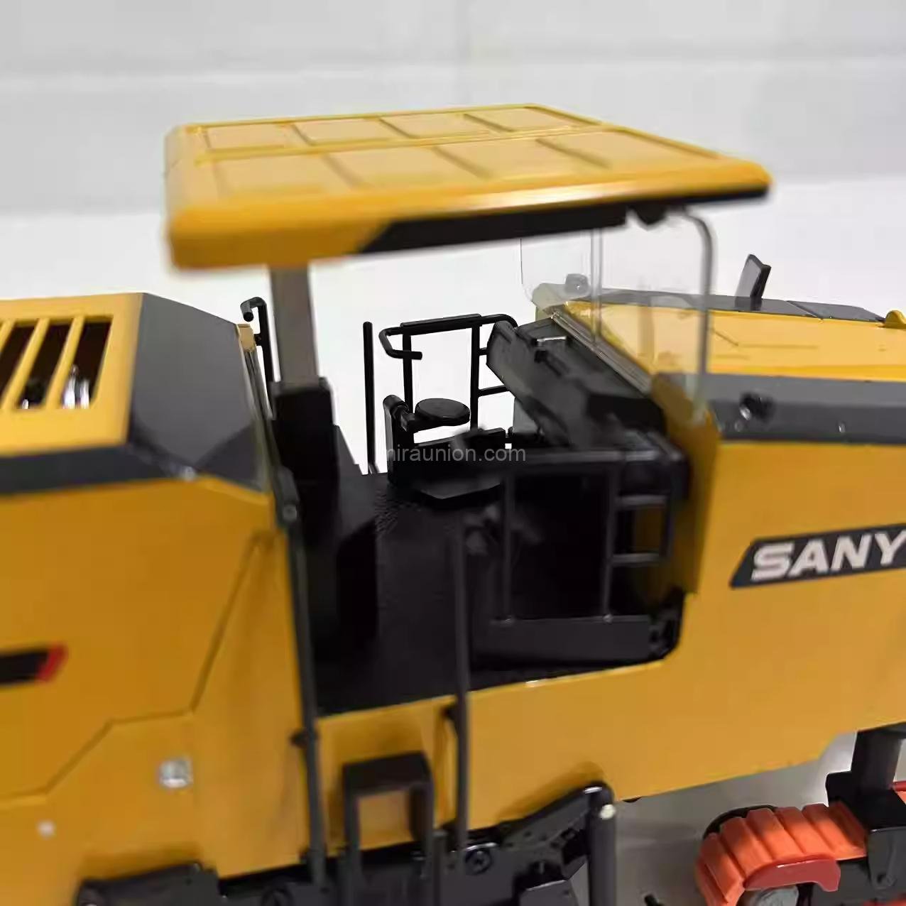 Lift the engine hood to reveal intricate internal details, replicating the real machine’s power system. This feature lets you appreciate the craftsmanship and technical precision of SANY’s engineering.Adjustable Roof Canopy