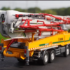 The model captures the heavy-duty presence of the original pump truck with precise panel lines and intricate mechanical details. The extendable six-section boom, sturdy outriggers, and hydraulic cylinders reflect the power and functionality of real construction equipment.