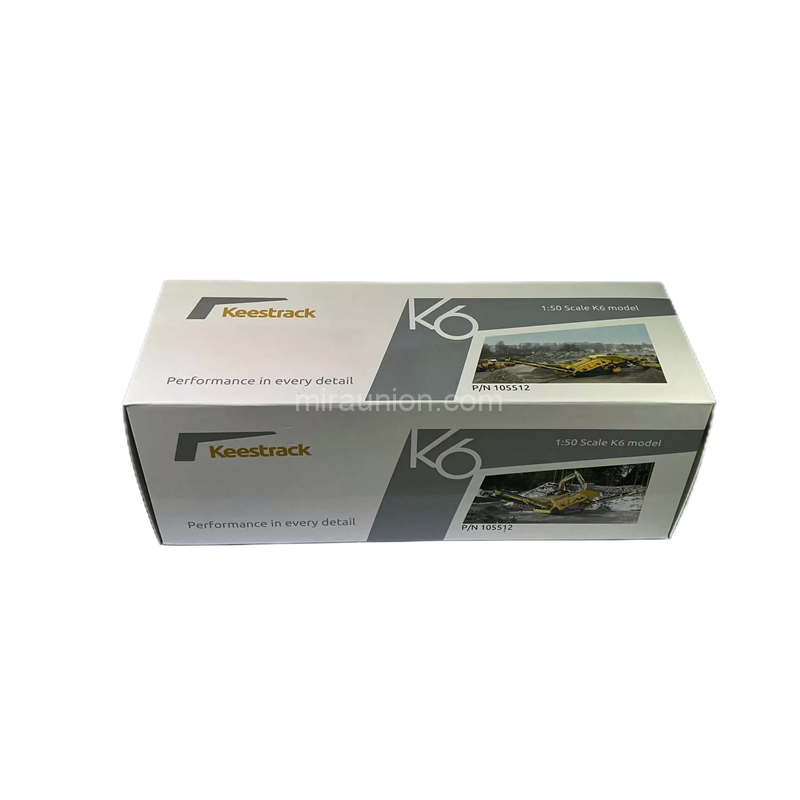 1:50 Scale Keestrack Frontier K6 model features several functional parts that make it stand out from other diecast models. The track are movable, allowing the model to be repositioned easily. The PVC belt mimics the real conveyor system, adding movement to the model for a more dynamic display.