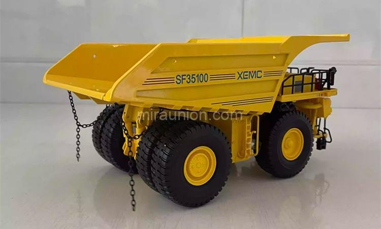This alloy mining dump truck captures the rugged, bold stance of the real SF35100 with a commanding yellow finish and industrial-grade structure.