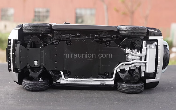 The alloy wheels come with realistic tire tread patterns and highly polished rims, bringing an extra touch of authenticity to the model. The suspension is also highly detailed, showcasing the SUV’s rugged capabilities.