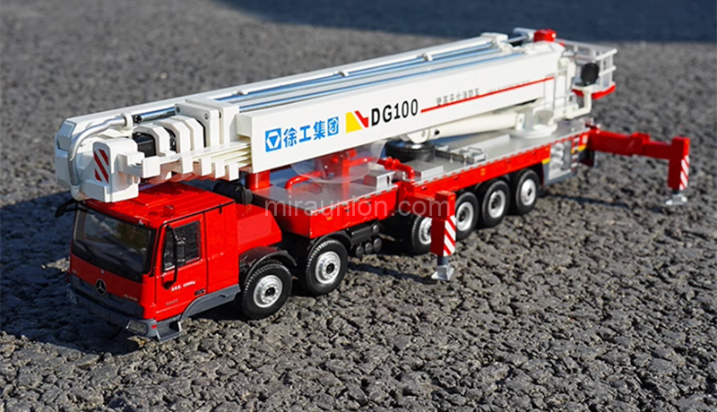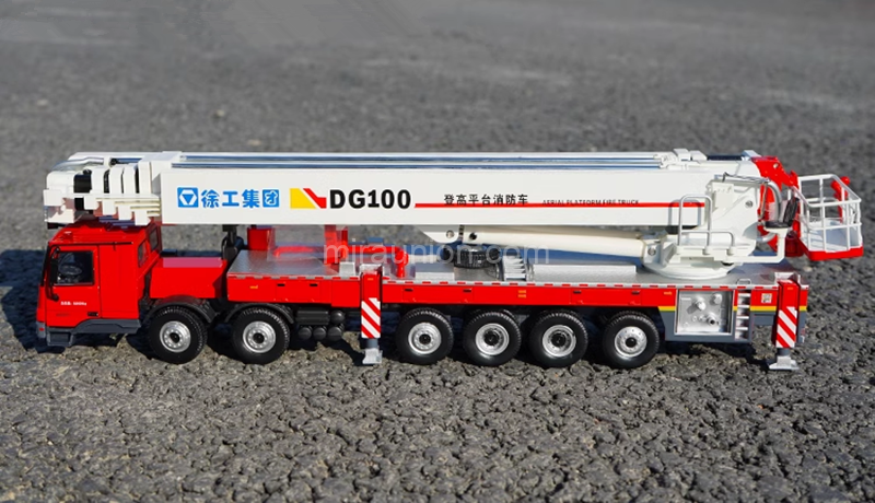 This 1:50 scale XCMG DG100 Aerial Platform Fire Truck Model replicates the real vehicle with accurate proportions, smooth structural lines, and an eye-catching red paint finish. The high-gloss coating enhances its premium appearance, making it a standout piece for collectors and enthusiasts.